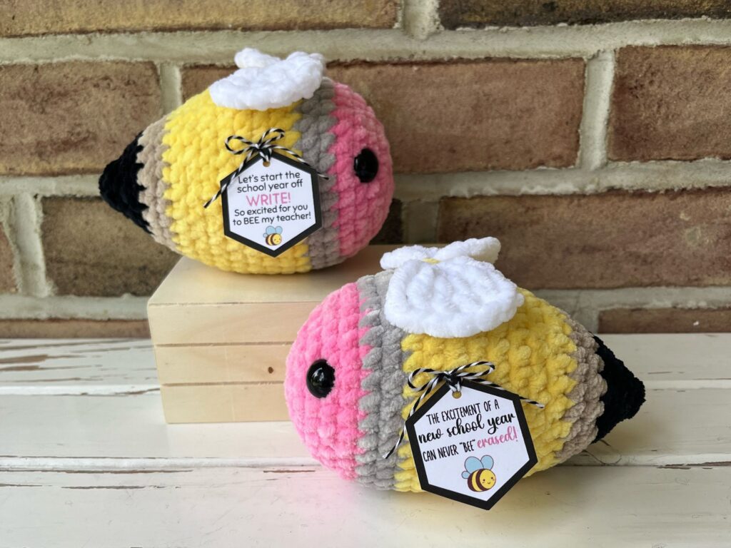 Download your copy of my FREE Pencil Bee Tags here! Don’t forget to tag me on Instagram (@WildFlowersCrochetCo) so I can see your cute bees!!